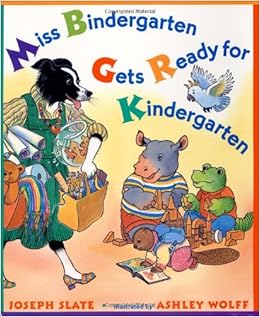 At first you read the premise of this, the first Miss Bindergarten picture book, and you find it a bit too much. Not only is this an alphabet book, not ONLY is this a getting-ready-for-school book, but this is also a learn your animals book. Not since Graham Base's, "Water Hole" has an author tried to do so much in a single item intended (after all) for the early reader set. And yet, remarkably, "Miss Bindergarten" is all these things and more. A rollicking raucous encapsulation of ALL the things a kindergarten teacher must do before a single one of her students has entered the room, the book's a pip. I mean, it's impossible to dislike this story. It's a fun read, a collection of truly charming illustrations, and a great way to introduce kids to the concept of school itself. For the child just beginning to learn away from home, this is an ideal gift or present.Our opening pages show a lovely border collie being woken at 6:00 in the morning by her peppy little cuckoo clock. With her pet cockatoo in tow we watch as Miss Bindergarten (for so she is) goes about her morning by washing her face, finding a lot pair of shoes and eating a bagel with the morning paper. Then she's off with a full trunk and a yawning cockatoo. In the meantime, various students in alphabetical order are getting ready for kindergarten in their own ways. "Adam Krupp wakes up. Brenda Heath brushes her teeth". Every once in a while we cut back to Miss Bindergarten who's tidying up a long abandoned schoolroom, frantically separating tinker toys, hanging mobiles, etc. As she does so it's difficult not to notice the post-it note stuck to her rear, and a forgotten price tag hanging from her blouse's collar. Time passes, more students come near, and in the end Miss Bindergarten's room is complete.