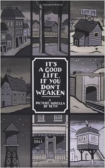 What's most likable about this graphic novel's protagonist and narrator is that he's something of a self-lacerating, depressed, oversensitive, melancholy soul, a true negative-thinker -- the sort of constantly gloomy, soliloquizing character who might ultimately prove exasperating to hang around with but whom I found refreshing and sort of appealing, at least in a world of comic-book superheroes. He gives the narrative its thoughtful, intelligent, somewhat troubled voice.But the narrative itself is awfully negligible -- mainly just the narrator's inexplicable and not-terribly-consuming obsession, over the years, with a deservedly obscure Canadian cartoonist of the past -- and there's no particular suspense involved, no colorful characters, no vivid scenes, no surprises, and no payoff. I read the book (as of course one does) at a single sitting and came away feeling pretty unsatisfied.I didn't even care much for Seth's graphic style. I grew up on those same New Yorker albums that he dotes on, and compared to that pantheon of cartoonists, Seth's artwork seems exceedingly grey and bland, especially because all the pages in this book are printed in black and white highlighted with the same tepid textbook-blue wash, which gets a little tiresome. (However, none of that blue mars the front cover. It's handsome and atmospheric, as you can see.)What had first led me to the book, oddly enough, was an online search for the origin of the saying "It's a great life if you don't weaken" -- something my father used to say, and which I gather was popular in his World War II generation. (The Net traces that line to Scottish novelist John Buchan, of "Thirty-Nine Steps" fame, who at one time served as governor general of Canada.