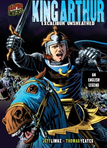 While perusing the .com website one day, I was surprised to discover this graphic novel and immediately thought...Huh?Thomas Yeates, the talented comic artist who took on the challenge and the privilege of illustrating the "Prince Valiant" comic strip in 2012, drew a comic retelling of the tale of King Arthur in 2007? As a long time fan of the Valiant newspaper strip, and someone who always enjoyed Mr. Yeates' work...this was something I had to see!"King Arthur: Excalibur Unsheathed" is a 48 paged graphic novel published for young readers by the Lerner Publishing Group and Millbrook Press, Inc. It is part of a line of illustrated books called "Graphic Universe" which features "Graphic Myths and Legends" from around the world retold using the sequential art medium. As written by Jeff Limke, "King Arthur" relates the story of how the young Arthur first takes the enchanted sword Excalibur from the stone and begins his mythic life to become the King of all England. During the quickly paced comic novel, Arthur is guided by the mysterious magician Merlin in the ways of knighthood and leadership, and as he matures into a young man, he learns how to be a king."King Arthur" is an admirable introduction to the early years of the boy who would become king, especially for the graphic novel's intended audience, young people. For older readers more familiar with the classic tale of Arthur, like myself, they may find the story a bit too condensed for their tastes. Still, Mr. Limke does embue the story with a good sense of its characters, notably in the young boy Arthur, and the loving bond he shares with his older brother Kay, and their father, Lord Ector.