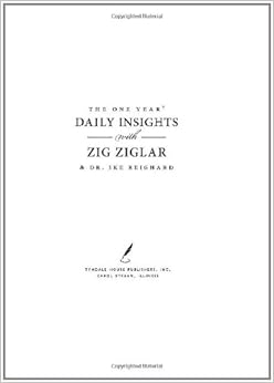 The One Year Daily Insights with Zig Ziglar and Dr. Ike ReighardThis is a devotional book with dates on each page, so you can start it any time, and any year. Each page has a topic, one scripture verse, a reading, two questions, and a quote by various speakers and public figures.Here are examples of questions and quotes:Do you want to be the kind of wise person who has a profound influence on others? Why or why not?Are you willing to pay the price? Explain your answer.What's the best news you've ever received?How do you respond to criticism?What are the common temptations you face everyday?How can you overcome bitterness?What are some recurring situations that cause you to run away in fear or fight back in defiance?Who are the people you trust to tell you the truth?What are some things you tend to worry about?"To see His star is good, but to see His face is better." D.L. Moody"To disregard what the world thinks of us is not only arrogant but utterly shameless." Cicero"The only question Jesus ever asked God is `Why have you forsaken me?' This is the same question most every believer asks at some point in their spiritual journey." Ike Reighard"He who is not everyday conquering some fear has not learned the secret of life." Ralph Waldo EmersonThere is a small space at the bottom of each page, so you could write a couple of thoughts in the book if you wanted to as you go through the daily reading. Good train reading. Also would be a nice springboard for a Christian accountability group to go through together and discuss the various topics.