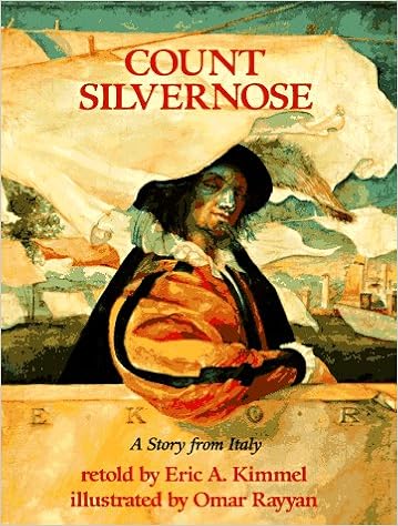I came across this book looking for a picture book version of Bluebeard. They are very familiar tales, but instead of a freakish blue beard this Italian variant features a villain with a silver nose (likely a replacement for the real one lost in a duel). Assunta knows better than to trust a man with a silver nose, but her sisters are foolish and eagerly accompany him to his home as his servants. After each sister disappears it's up to Assunta to travel to the Count's home and get to the bottom of the mystery. (She doesn't have brothers to depend on like the heroine of Bluebeard). It's an eerie, but empowering story.Simply put - I love it! I love the unique storyline which starts with a heroine described as having warts, a glass eye and a face as ugly as a barn door. She's also clever and kind, but also a little sassy. Go Assunta! Eric Kimmel has adapted this from Italo Calvino's version found in Italian Folktales. All in all it's a very pleasing and entertaining read. I also love the illustrations which are like nothing I've ever seen in a picture book before. Omar Rayyan has chosen to model them after an Italian Renaissance sketchbook - with vibrant color paintings bleeding into incomplete sketches with parchment paper edges. Stunning! Very highly recommended for lovers of fairy tales and great art!