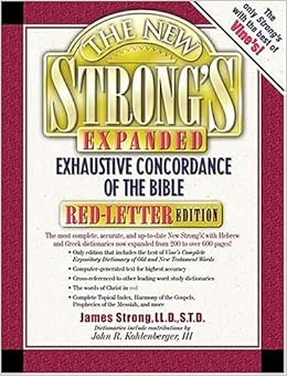 Here is a short simple review on (The New Strong's Expanded Exhaustive Concordance of the Bible) (Red-Letter Edition)As a Student of not only the bible, but also the original languages. I must say i am simply amazed at this version of Strongs, and not only the product, but also these sellers. i got it even days before i was supposed to always a plus. that about covers my happiness with the sellers, although i still feel i am not giving them the justice they deserve. but now onto the product itself, it is a hard back which i usually can not stand, but for something even this thick it works. this strongs is done in easy laid out sections. it gives you an introduction, how to use etc, then goes into a concordance of all the words used in the KJV, also other translations as i was suprised a added bonus not mentioned. from the concordance it then goes into the strongs number section of Hebrew, then Greek, respectfully. and yet another awesome bonus not in many Strongs, is not only the words of our Lord in red (although all of the word of God is inspired of course) but the cool addition of some of vines best Definitions of not only the english but also on the hebrew and greek. there is also a complete topical index to the bible i did not know i was getting which is great, a chart of the harmony of the gospels, Teachings and illustrations of Christ,The parables of Jesus Christ, The laws of the bible, Prayers of the bible, the Jewish calendar, Jewish feasts, Monies and weights, New testament monies,Measures of length, Dry measures and liquid measures. for thosee that took the time to read this, thank you and God bless. i was trying to write a review quickly, so i apologize for missing pronunctiation and spacing etc. but wanted to get it all in. what you will get with this awesome addition for pastors, and students alike.in Christbrother Travis.