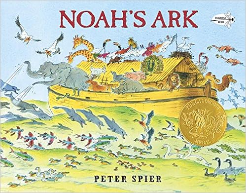 This book won Peter Spier the coveted Caldecott Medal for the best illustrated children's book in 1978. Most Caldecott Medal winners enhance the story with illustrations. But a few transcend the written material by becoming the story. Noah's Ark is of the latter category.The book opens with a scene of brutal war on the left hand page. On the right hand page is the image of Noah tending to his agricultural tasks. The words at the bottom of the page say simply, " . . . But Noah found grace in the eyes of the Lord." Next, there is a translation of a Dutch poem written by Jacobus Revins that tells the briefest outline of the Noah saga. The rest of the book until the last page is wordless. The final page shows Noah after the flood tending to his agriculture with the words, " . . . and he planted a vineyard."The illustrations provide nonverbal stories about Noah. You see the enormous task it was to build an ark, the difficulties of rounding up all the animals, the even greater challenges of taking care of them during the flood on the ark, and the process of returning to the land as the waters receded. By using only illustrations, you and your child have some latitude as to how you wish to interpret the story. You can be very literal, or you can be more poetic. A lot depends on how sensitive your child is. I can remember feeling frightened as a young child to realize that God could choose to destroy virtually all life on Earth.The illustrations are brilliant for portraying perspective. The ark is made to appear enormous. Yet there are some illustrations during the flood where the ark is clearly tiny in the context of the worldwide ocean.There are a lot of stories within the story.