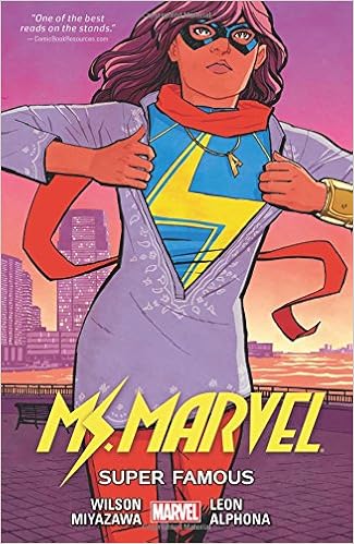 Written by G. Willow Wilson with art by Takeshi Miyazawa, Nico Leon and Adrian Alphona and colors by Ian Herring, Ms. Marvel: Super Famous - the 5th volume in the Ms. Marvel series is - I have to be honest - a little disappointing. It's still good, mind you. It's just that it seems to fall short of the fairly awesome level established in the first four volumes for reasons I will go into. Volume 5 contains Ms. Marvel #1-6 for 2015.It's been a while - maybe a year - since the events of Volume 4: Last Days, and a lot has happened. Ms. Marvel, aka Kamala Khan, has joined the Avengers which apparently is fairly awesome for Kamala (though you'd need to read that storyline in The Avengers as most of that is off-stage here). But as Kamala is learning, a person - even a superhero - only has so much time in a day and the more time you spend on one thing the less time you have for other things, like school, family and relationships. All of which are starting to suffer for Kamala. Particularly her relationship with Bruno, who has apparently, to Kamala's surprise and chagrin, moved on. Another surprise and chagrin moment comes when Kamala discovers that Ms. Marvel's image is being used to promote the corporate-backed gentrification of Jersey City.The best part of this volume, for me anyway, centers around a new character, Ayesha, whom it turns out - again to Kamala's utter shock and surprise - that her brother Aamir is considering for marriage. Witness this bit of dialogue from their first meeting:Ayesha: " 'The spice is life.' "Kamala (stunned): "Did you just make a _Dune_ reference?"Ayesha (coy smile): "Maybe."Kamala: "Please marry my brother.