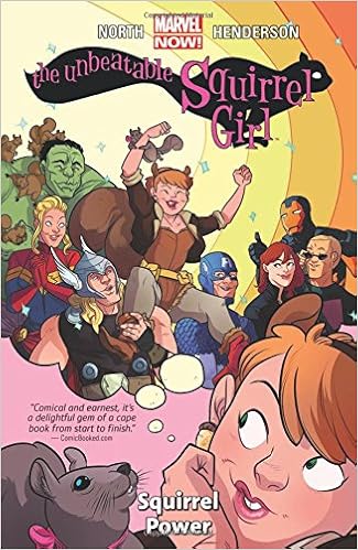 This trade paperback collects the first four issues of Squirrel Girl's ongoing series which started in January 2015 plus her debut appearance in Marvel Superheroes #8 from 1990.The writing is from Ryan North of Dinosaur Comics and most recently the Adventure Time Comic. Art is by the Indie / Alternative darling Erica Henderson. The art is charming and delightful in it's simplicity and quirkiness. The writing is simplistic but equally charming. This is a book that can be enjoyed by the very young and the very old and everybody in between.Doreen Green is Squirrel Girl and she is an over night sensation. That is if you consider 25 years over night. Created by Steve Ditko (Spider-Man's co-creator) and Will Murray ( author of new Doc Savage and Tarzan Novels) in 1990. She was kept alive by writers such as Dan Slott who placed her in his Great Lakes Avengers. Some credit must also be given to G Willow Wilson who's Ms. Marvel reboot proved their was a market for books featuring teen aged girl super-heroes.Doreen Green who was fifteen in her first appearance is now old enough to start college (18 ?) We join the book as Doreen starts her college life. She has the proportional speed and strength of a squirrel. She also has a large bushy tail which she tucks in her pants when in her civilian identity so that she looks like Nicki Minaj. She also can talk with squirrels and have them do her bidding. Tippy-Toe the squirrel is her faithful friend and side kick.This book should be also praised for giving us a young girl character with a realistic body type and not another big boobed centerfold shaped girl that you find in most superhero comics.The first issue is a stand alone where she goes up against Kraven The Hunter.