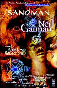 In my mind, "The Sandman" is the greatest comic book to come along in the past 15 years or so. Neil Gaiman is such a great writer and brings so much into the mix that is Sandman. Of course, it's easy to do this when Sandman is the King Of Dreams, but the way Neil did it was truly magical. "Fables and Reflections" is perhaps my favorite of the Sandman collections because they are all self-contained stories that are all interesing in their own right. All the Sandman issues are great, but you cannot read only one chapter of "Brief Lives" or "Doll's House" to get the whole meaning. Because this collection is so varied, it would be a good place for new readers tom start. The Sandman storylines often jump around in time anyway, after all Dream has been around since the beginning of time and that is a lot of ground to cover! I should start off perhaps by explaining who the Sandman is. The Sandman goes by many names, but his given name is Dream and he is the king of dreams. He is one of the Endless, who are all older than Gods. The rest of the Endless are Destiny, Death, Desire, Despair, Destruction, and Delirium. Each of their names gives you a glimpse of what they are and what they do. Death, Delirium, Despair, and Desire pop up in this volume, as do other familiar charactewrs like Matthew the Raven. What distinguishes "Fables & Reflections" from other Sandman collections is that not only does it not follow a choesive story, but Dream is not directly involved in all the tales told here. Some of the tales are stories being told that involve the Dream King.