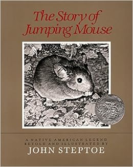 John Steptoe's 40-page illustrated version of The Story of Jumping Mouse is a Native American legend of a Magic Frog who gives his jumping legs to a discouraged young mouse that had recently set out on a quest -- a journey to a far-off land. The frog also tells Jumping Mouse to remember three words -- "never lose hope." Rejuvenated and able to travel much more quickly, Jumping Mouse continues on his journey. On the way he encounters a fat mouse who invites him to stay with him the rest of his life in a safe haven. But Jumping Mouse is determined to continue his quest and later discovers his acquaintance is eaten by a snake. When his journey brings him to a vast prairie Jumping Mouse is surprised to meet a lonely buffalo just standing there. Upon inquiry, he learns that the buffalo is blind, so Jumping Mouse imitates Magic Frog by giving his eyes sight to a blind buffalo and the buffalo leads him across the prairie on his back. At the end of the prairie the buffalo can go no further and Jumping Mouse recalls Magic Frog's words, "never lose hope" and thus journeys animal that identifies himself as a fox that can't smell. Jumping Mouse tries his magic once more and is able to give the fox his nose. The fox, delighted at his cure, accompanies Jumping Mouse through the forest. But as the forest ends at the foot of a mountain and the fox can not go any further, Jumping Mouse goes to sleep in despair in the face of this seemingly hopeless barrier to his goal. Suddenly Magic Frog appears again and tells Jumping Mouse to jump as high as he can and remember his words, "never lose hope." He gathers his courage, leaps as high as he can, and discovers himself soaring over the mountain as Magic Frog below shouts out Jumping Mouse's new name -- "Eagle." This is a wonderful story to teach children about Hope, Determination, Sacrifice, Hardship, and Compassion.