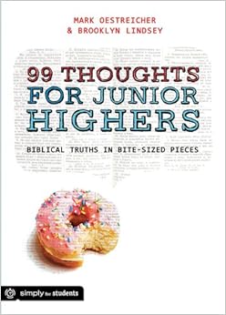 99 Thoughts for Junior Highers by Mark Oestriecher and Brooklyn Lindsay is a fresh and fun new book just FOR your Junior High (and middle school) students that is filled full of 99 huge truths that every Junior Higher needs-- broken down into tasty little bite-size pieces. Each of the 99 thoughts contained in this book is a basic and essential truth that every young teen needs to understand. No word or space was wasted in this very short, easy-to-read 133 page book. Written with an absolute heart for Junior Highers, as each thought will be sure to speak love and truth into the life of it's young teen readers.The book is broken down into 11 chapters with 7-10 thoughts in each, covering the full range of topics connected to the life of a Junior Higher. From identity to body change to topics of faith and of course some wisdom on the opposite sex, I can not honestly think of anything that was not covered. In addition to the great ideas and instruction, each section ends with a personal, real-life story from either Brooklyn or Marko from their own Junior High years, that makes this already well written book even more personal.I am sure Marko, Brooklyn and many of the rest of us working with 6th-8th graders in our ministry will agree with me when I say, I wish there was a book like this when I was going through these years. Working with this age exclusively, I know how hard my 6th-8th students struggle and the questions I process with them on daily basis. This is a book that is going to be SO valuable to them, but also to anyone working with or in the life of young teens. It is an easy hand-off, a tool to use in discipleship, and just an all-around great resource to have.