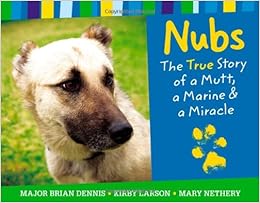 The subtitle for this book is "The True Story of a Mutt, A Marine, and a Miracle," and it is certainly that. Marine Major Brian Dennis, a fighter pilot by training, was leading leading border patrols in western Iraq when he came upon pack of wild dogs led by a wiry mutt with clipped ears. (Iraqi's believe that clipping a dog's ears makes it 'tough' and reduces the area that an opposing dog can grab onto.) The pack was living on desert mice and rats, and scraps from local Iraqi soldiers.It took awhile, but eventually Major Dennis was able to make friends with the dog, whom he named "Nubs." Periodically, Dennis and his men would leave for several days before returning. There Nubs would be waiting. On the unit's last return, however, Nubs hung back - he'd been stabbed by locals using a screwdriver. Major Dennis and his corpsman treated the wound and gave Nubs antibiotics, but the dog was too sore to eat and drink, and had difficulty even lying down.The next day the patrol drove off to a location 70 miles away, leaving Nubs and the pack behind. Two days later, despite 18 degree nights and the dangers of a wild desert and war zone, Nubs appeared at Major Dennis' new location, much worse for wear. Despite military prohibition against keeping animals, the group adopted Nubs, and even built him a doghouse. Unfortunately, some of Major Dennis' two-legged 'friends' reported this heinous violation, and he was given four days to get rid of the dog, "or else."Major Dennis acted quickly, creating a web-based appeal for funds to help pay the cost of sending Nubs to his home in San Diego, and arranging for his interpreter's brother to help implement move.