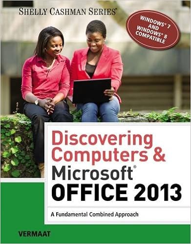 1. Digital Literacy: Introducing a World of Technology. 2. The Internet: Accessing, Searching, Sharing, and Communicating. 3. Computers and Mobile Devices: Evaluating the Possibilities. 4. Programs and Apps: Using Software at Work, School, and Home. 5. Digital Safety and Security: Identifying Threats, Issues, and Defenses. Office 2013 and Windows 8: Essential Concepts and Skills. Office 365 Essentials. Microsoft(R) Word 2013. 1. Creating, Formatting, and Editing a Word Document with a Picture. 2. Creating a Research Paper with References and Sources. 3. Creating a Business Letter with a Letterhead and Table. Microsoft(R) PowerPoint(R) 2013. 1. Creating and Editing a Presentation with Pictures. 2. Enhancing a Presentation with Pictures, Shapes, and WordArt. 3. Reusing a Presentation and Adding Media and Animation. Microsoft(R) Excel(R) 2013. 1. Creating a Worksheet and a Chart. 2. Formulas, Functions, and Formatting. 3. Working with Large Worksheets, Charting, and What-If Analysis. Microsoft(R) Access(c) 2013. 1. Databases and Database Objects: An Introduction. 2. Querying a Database. Glossdex. Quick Reference. Important Notes for Windows 7 Users.