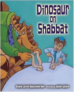 Our two and a half year old daughter loves this book so much that I had to find a gaint dinosaur to invite to Shabbos dinner. I found a four foot inflatable one that we dressed up in my husband's green shirt and a tie (because that's what the dinosaur wears in the story). Now, every Friday before we light candles, we read the story and then we hear someone knocking. We go open the front door to find dino there! He sleeps in my daughter's room and disappears after she goes to sleep Saturday night (after Shabbos is over). He returns again the following Shabbos, after spending the week with his family (the mommy and daddy dinosaurs). I highly recommend this book.