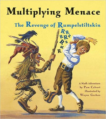 At first glance, i.e. judging a book by its cover, you would think that this is another version; a follow-up if you will, of the old Rumplestiltskin fairy tale, which by the way was fine with me as I am rather fond of this old story. But no, no, no...what a sneaky author we have here! While this work is indeed a rousing tale featuring the rotten little guy we all grew up with, it is so much more. In this little book we are given a wonderful math lesson dealing with multiplication of numbers and fractions.There are basically two kinds of people in this world when it comes to math; those that "get it" and those like myself that "don't get it." If you wonder down the halls of just about any middle school or high school in the country and ask random kids what they think about math the most common answer by far is "math sux." I will be honest with you and tell you that has been my standard answer since about the age of five. (Maybe not in those word, but pretty close). This is a pity, really. I think that one of the problems is that there are so many of us that fall into the category of "don't get it" that we have found very little about math that is actually fun! This little book is actually one of those rare little gems you find now and then that does actually make math fun!Peter, the little boy who was suppose to be given to Rumplestiltskin as the menacing little guy's payment for making straw into gold, is having his tenth birthday and Rumple shows up to collect. When he is refused the brings havoc to the kingdom using his magic walking stick to multiply things that should not be multiplied, i.e. bugs, rats, mice, noses and such, and to make things vanish through multiplication such as guards, cows, pigs, chickens and such...troubles, troubles, troubles!