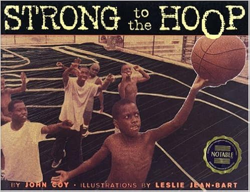 John Coy's ``Strong to the Hoop'' is exactly that -- a book that drives hard and scores with a story of playground hopes, doubts and triumphs, combined with vibrant photo-based visuals. It's the story of James, an undersized kid who suddenly finds himself called to play ball with the neighborhood big boys. By the time the teams reach game point, James has learned a lot about the game and himself, and while his triumph may be small it is also inspiring. ``Strong to the Hoop'' is also alive with sounds that get the reader in the game -- a bouncing ball in the opening, the heavy breathing and terse ``woofing'' between players on the court, even the ripping of a shirt. And though it involves boys, it's not only for boys. Girls now have plenty of sports opportunities, and know well the challenges of the game (not to mention the countless opportunities to discover new strengths and prove oneself among the big kids). ``Strong to the Hoop'' will appeal to boys and girls who enjoy the the test.A disclaimer, sort of: I know John Coy personally but if you have any doubt that his work is terrific check out ''Night Driving'' -- and the NY Times reviews of it. It's not just me.