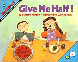 In theory the concept of helping children understand fractions at a basic level is great. I liked the visuals with a dividing line down on the pizza showing half, or dividing a package of 2 cupcakes. I also liked that the author included on some pages the math equations like 1/2 + 1/2 = 1.What I really did not like is the tone and the words the children and the mom (whom you do not see) in the story use. They are not very respectful to each other. I looked past the title "Give me Half" hoping the rest of the book would not be that sassy but I was wrong. Things like "I know you want some pizza, sis...you only get one slice" then "you'd better give me more than that", later on "you'd better give me some". Doesn't sound so terrible when you are reading it to yourself but when you read it to children (in my case, 4 year old twins) it sounds really sassy and rude, even my children noticed it and commented about the rude words on almost every page.