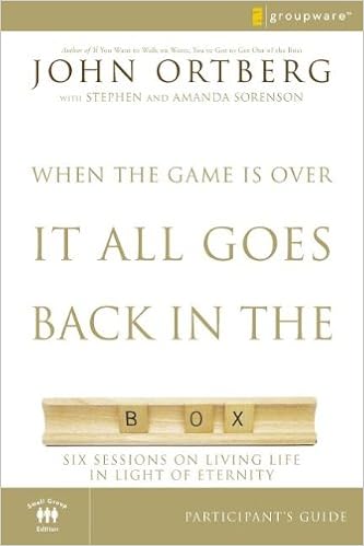When the Game Is Over It All Goes Back in the Box is a book on life by John Ortberg, a Presbyterian pastor. His argument is thus: you will die, and when you do, you will lose all the stuff you have. Therefore, instead of focusing on things you cannot keep, focus on things you can.Ortberg says that the object of life is, as Jesus said, to be rich toward God. Pleasing God is part of this; part of it is putting a greater priority on personal relationships. This also turns out to be the place where we find true fulfillment. Ortberg's main target is those who say they will work less and spend more time with their families "when things settle down." His message is this: things never settle down until it's too late.The book is written with an amusing game theme. Ortberg borrows a lot of anecdotes from a lot of different authors, which is fine. He gives credit where credit is due. Ortberg has a surprisingly good sense of humor. Sometimes his jokes are pretty corny, but on the whole he seems like a funny guy. My only criticism of his writing is a small one: several chapters tend to run a little long (the reader has gotten the point and is ready to move on).There is criticism due the publisher: on nearly every other page, there are excerpts from the text blown up in boxes on the same page. Perhaps this is done for those flipping through the book in a shop, or for those who skim, but for the actual reader, it is incredibly annoying and distracting.On the whole, When the Game Is Over It All Goes Back in the Box is an accessible, engaging, humorous book on Christian living and eternity. This is obviously a Christian book, but the theologizing does not get heavy-handed, and Ortberg does not beat the reader over the head with the Bible. It can benefit any Christian as well as nonchristians who are feeling unfulfilled.RECOMMENDED