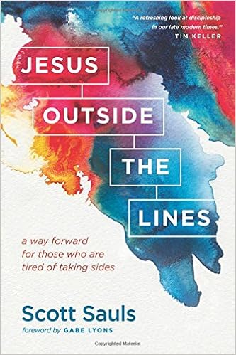 A powerful, practical little volume!I requested Jesus Outside the Lines because of the subtitle.Who isn't tired of taking sides?I can turn on the radio these days and my head starts spinning.So many issues, so many debates, so many hot topics....How do we pick our battles?And is that even an analogy we should use?Are these confrontations to win or opportunities to engage?This book claims to point to a way forward.Does it deliver?Yes. For me it did.Scott Sauls has arranged this book around ten contemporary areas of division, in our politics, piety, fiscal policy, and posture towards others.Red State or Blue State?For the Unborn or for the Poor?Personal Faith or Institutional Church?Money Guilt or Money Greed?Affirmation or Critique?Accountability or Compassion?Hypocrite or Work in Progress?Sexual Freedom or Chastity?Hope Or Realism?Self Esteem or God-Esteem?These chapters are not in-depth sermons about each issue that tell you what to say and think/Instead, this book calls us back to foundational Gospel truths, allowing us to think about what that means for these issues.Sometimes I wish he'd had more room to explore the nuances of things, most particularly in the chapter on organized church.As always, we have to define the church first, as a family, not a building or program.And once we've said that, then people will ask why the family has to gather weekly on Sunday, in a stuffy/drafty/formal/unaesthetic building."If you're hooking up with fellow Christians, challenging, counseling, and communing with each other, isn't that church?