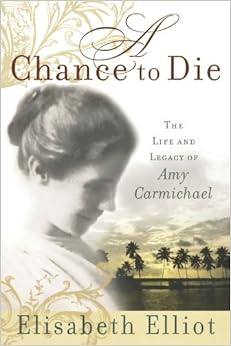 Amy Carmichael has been a spiritual mother to many more than the children she rescued from temple prostitution in India at the turn of the 19th century. Her influence extends much farther beyond her geographical location and lifetime. Through the pages of A CHANCE TO DIE by Elisabeth Elliot that influence will be even more magnified. Ms. Elliot very ably conveys the passion and discipline which harmoniously co-existed in Amy and drove her to single-handedly and successfully combat the traditions which enslaved the children she sought to rescue. Amy's life is described from childhood, through the active mission years, and on into the last 20 years she spent as an invalid before her death. It is flesh and blood we see through it all; not some mystical saint who has achieved great spiritual heights unobtainable to the rest of us. We are allowed glimpses of her struggles, fears, doubts, failures, and blind spots as well as her triumphs. We see the growth made and insights obtained as a result of all the circumstances of her life. Amy saw "missions as a chance to die" to oneself so that Christ might be revealed. Ms. Elliot draws together all the events and details of Amy's life and beautifully weaves them together with writings from her books and journals, and interviews with those who knew her. Amy Carmichael has found a kindred spirit in Elisabeth Elliot and the reader is left with the desire to get to know both of these remarkable women better.