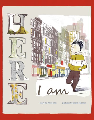 Here I Am by Patti Kim and illustrated by Sonia Sánchez is a wordless book yet it tells a complex story of one boy's immigration, and struggle to make America his home. Because it relies on the reader's imagination to supply the text, it becomes uniquely personal while remaining a universal story as well.As a wordless book, the success of the story relies on the quality of the artwork. Sánchez's complex illustrations succeed. They capture the many emotions and struggles which the boy faces. The story begins with the boy peering out an airplane window. This is not the face of an excited child thrilled to be flying the skies to an anticipated destination. Sadness paints his face.Subsequent illustrations depict signs with random letters. Their message remains gibberish to eyes unfamiliar with English. We follow the boy through his days as he confronts, confusion, loneliness, fear, sadness and isolation. Until he finds a seed which becomes a talisman for possibility, for hope and positivity.Eventually, the sed brings him friendship and a feeling of belonging. In the final illustration, the boy imagines that he sees the words "Here I am." Now he not only can recognize and read the English words, he realizes that he belongs.As part of the back matter of the book, the author includes comments that explain the back story which motivated her to write "Here I Am." With her family, she immigrated to the U.S. from Korea. with her family. This is her personal narrative but it is also more global than that. She writes, "If you are an immigrant or maybe just facing something new and different in your life, I hope my story helps you see that you're not alone.