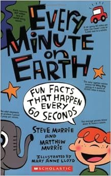 I absolutely loved this book!It's been awhile since I found myself totally engrossed within the pages of a non-fiction book, but authors Steve & Matthew Murrie managed to keep my attention from the first page to the last with EVERY MINUTE ON EARTH. More importantly, the authors deliver exactly what the title promises -- totally fun facts about things that happen on Earth every sixty seconds.The book is broken down into eight main categories: Earth, Space, The Human Body, Technology, Animals, Food, Pop Culture, and Sports. Each category is also followed by activities that you can do yourself (or with friends!) that are fun, easy, and awesome!So, what exactly does happen on Earth every sixty seconds? Here are just a few examples:2,000 thunderstorms occur.45 million gallons of water go over Niagra Falls.2,271 working satellites orbit Earth.A hair grows 0.00027 inch.954 camera phones are sold.15,000 gallons of air are inhaled by a blue whale.21,000 pizzas are baked.180 Barbies are sold.115 soccer balls are made -- and 61 of them are in Pakistan.Totally cool, right? And these are just a few of the amazing facts you'll find in this book! Believe me, everyone needs a copy of EVERY MINUTE ON EARTH in their personal library. Just think, you can learn something new every minute (and maybe find yourself added to the next addition of this great read!).Reviewed by: Jennifer Wardrip, aka "The Genius"