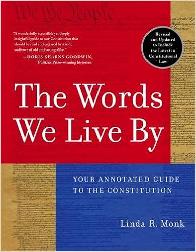 The Words We Live By is a readily accessible, quick reference analysis of the Constitution of the United States of America. It makes use of a functional format (that resembles a text book) as well as interesting little anecdotes that restore a portion of the textual and historical romance that you naturally lose in any abridgment. It presents the analytical and background material in a manner that easily correlates to the corresponding text within the Constitution. Taking a "one bite at a time" type of approach, The Words We Live By briefly examines our Constitution in multiple contexts--a refreshing little jaunt, through a critical piece of our heritage.Linda Monk employs an informative method in her writing; it kind of resembles a letter that you'd write home, describing your new surroundings. She tells things, quite technically, "how they are," and then proceeds to give some necessary background. In her own words, "the Constitution is also the product of an ongoing conversation among Americans about the meaning of freedom in their daily lives."(Monk 9) Frequently she goes beyond glossary or the bare minimum historical information to reveal glimpses of the fascinating complexity of it all. I didn't always feel edified by the sidebar comments made, but they were varied and presented a broad spectrum of things one wouldn't normally have considered. I didn't find this book to be constructed to lead the reader to any one opinion. While personally I don't care too much for her type of voice, she did employ her method very well, and it effectively brought out appealing details of the study of our history.The book begins by establishing some common ground with a general introduction, as does each section.
