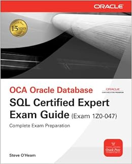 Best Sellers Rank: #398,462 Paid in Kindle Store (See Top 100 Paid in Kindle Store) #38 in Books > Computers & Technology > Certification > Oracle #137 in Books > Computers & Technology > Databases & Big Data > Oracle #306 in Books > Computers & Technology > Databases & Big Data > SQL