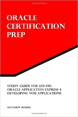 Study Guide for 1Z0-450: Oracle Application Express 4: Developing Web Applications: Oracle Certification Prep OCM Java EE 6 Enterprise Architect Exam Guide (Exams 1Z0-807, 1Z0-865 & 1Z0-866) (Oracle Press) Study Guide for 1Z0-460: Oracle Linux 6 Implementation Essentials (Oracle Certification Prep) Study Guide for 1Z0-060: Upgrade to Oracle Database 12c: Oracle Certification Prep Study Guide for 1Z0-062: Oracle Database 12c: Installation and Administration: Oracle Certification Prep Study Guide for 1Z0-051: Oracle Database 11g: SQL Fundamentals I: Oracle Certification Prep Study Guide for 1Z0-144: Oracle Database 11g: Program with PL/SQL: Oracle Certification Prep Study Guide for 1Z0-071: Oracle Database 12c SQL: Oracle Certification Prep Study Guide for 1Z0-146: Oracle Database 11g: Advanced PL/SQL (Oracle Certification Prep) Study Guide for 1Z0-117: Oracle Database 11g Release 2: SQL Tuning (Oracle Certification Prep) Study Guide for 1Z0-061: Oracle Database 12c: SQL Fundamentals (Oracle Certification Prep) Study Guide for 1Z0-052: Oracle Database 11g: Administration I: Oracle Certification Prep Study Guide for 1Z0-053: Oracle Database 11g: Administration II (Oracle Certification Prep) Study Guide for 1Z0-006: Oracle Database Foundations: Oracle Certification Prep Study Guide for 1Z0-497: Oracle Database 12c Essentials: Oracle Certification Prep Study Guide for 1Z0-067: Upgrade Oracle9i/10g/11g OCA to Oracle Database 12c OCP: Oracle Certification Prep Study Guide for 1Z0-063: Oracle Database 12c: Advanced Administration: Oracle Certification Prep OCA: Oracle Database 12c Administrator Certified Associate Study Guide: Exams 1Z0-061 and 1Z0-062 Expert Oracle Application Express Plugins: Building Reusable Components (Expert's Voice in Oracle) All-in-one Oracle 12c Associate Last Minute Guide: 1Z0-047 and 1Z0-062