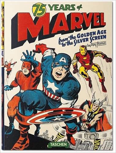Another giant (and weighty) leap for comics history as Taschen delivers the goods on Marvel. The huge books follows the same format as the story of DC Comics Taschen published in 2010 though with a couple of differences: the five fold-out Timelines in the DC book are now presented as a loose insert printed both sides and folding out to fifty-five inches wide; there is no index, which I find sort of amazing in a title like this.The editorial covers eight decades of Marvel and author Roy Thomas would seem the obvious choice to write about the company, he was an editor there from 1965 to 1980. The four chapters, each opening like the DC book with a spread wide bit of art printed on thick paper with reflective metallic ink, look at the origins of Martin Goodman and his Timely Comics of which Marvel was a subsidiary group of titles. Timely morphed into Atlas comics in 1951 which eventually, in the early sixties, became the Marvel line that carries on today and the book is right up to date, too, with the cover of Black Widow issue six from July this year.A nice feature of the editorial are references to comic and media items through the decades and how they related to Marvel and their comic characters. I think the real strength of the book is the art, pages and pages of covers, spreads, individual frames and several examples of cover art (blown up big) as inked but before the color was added. A two-page foldout of Steranko's spread from Strange tales 167 is also included.The book's production is, as the DC title, first-class. Beautifully printed and bound with all the images getting deep comprehensive captions, eight pages at the back have biogs of several dozen writers and artists who were the real masters of Marvel.